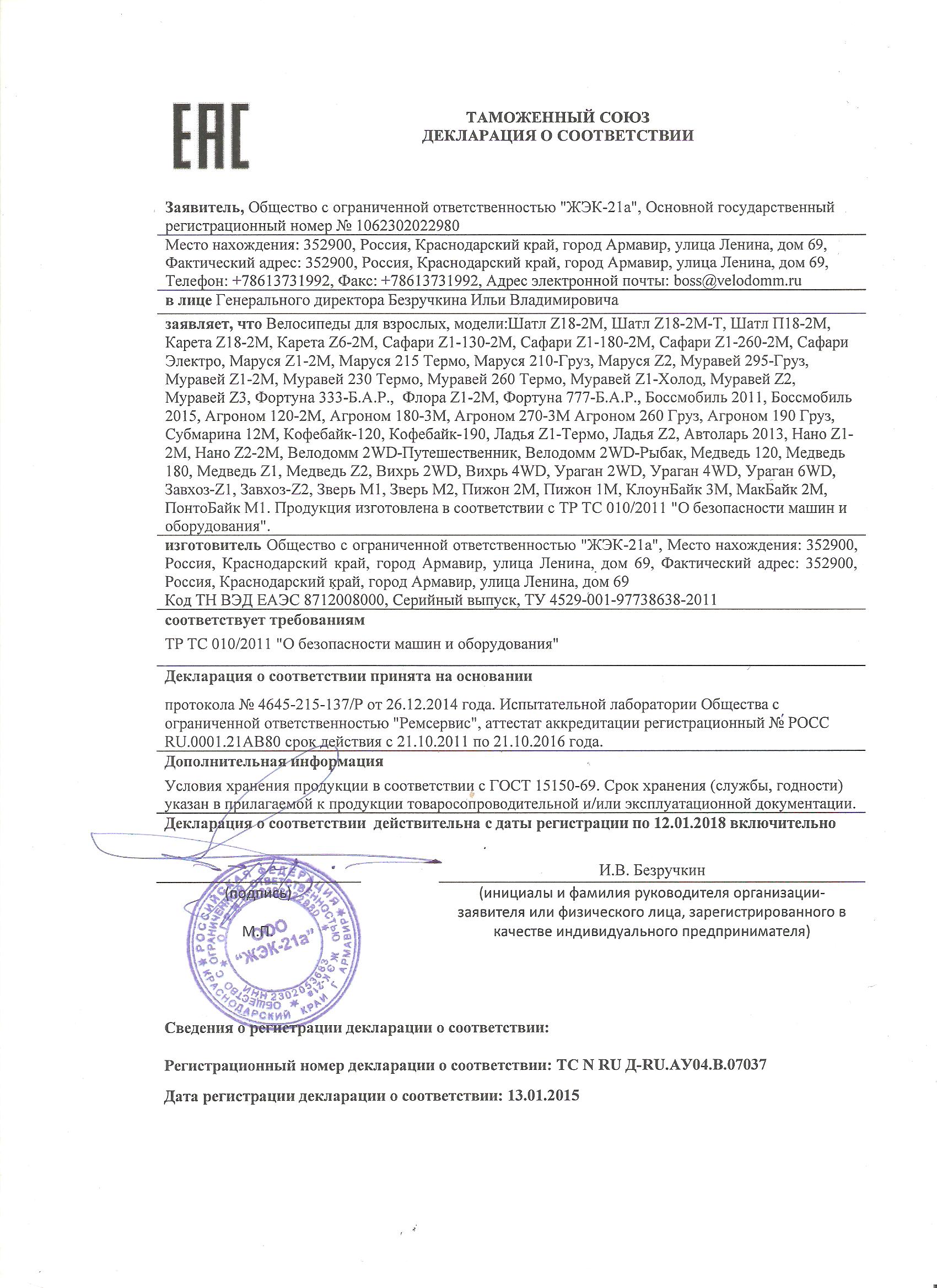 И технические условия - ТУ 4529-001-97738638-2011 Мы сертифицируем нашу продукцию с 2011 года. Ежегодно. Добавляя и совершенствую модели велорикш.